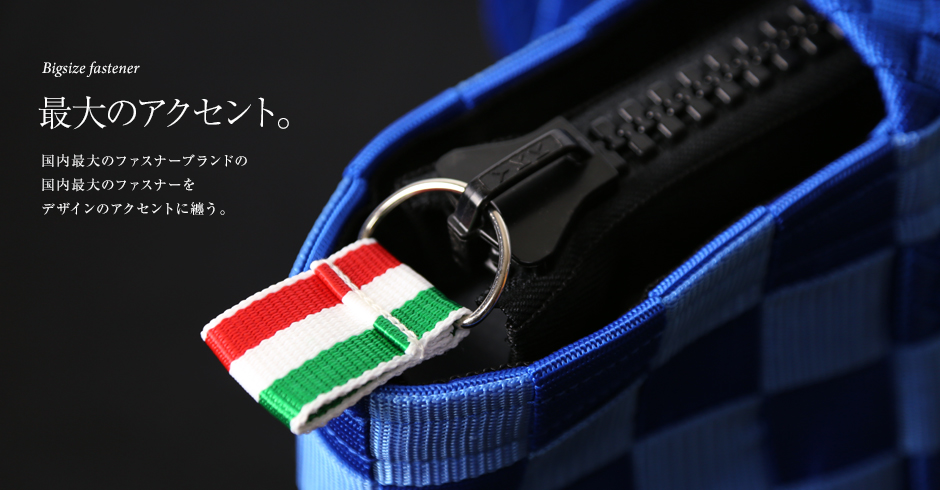 最大のアクセント。国内最大のファスナーブランドの国内最大のファスナーをデザインのアクセントに纏う。